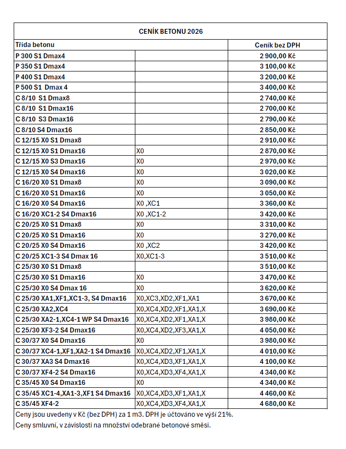 Každou cenovou nabídku sestavujeme na míru – zohledňujeme objem vaší objednávky i specifické požadavky na složení betonu. Čím větší množství potřebujete, tím výhodnější podmínky vám můžeme nabídnout.